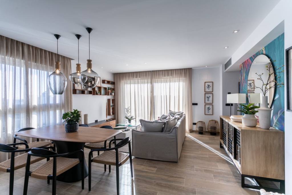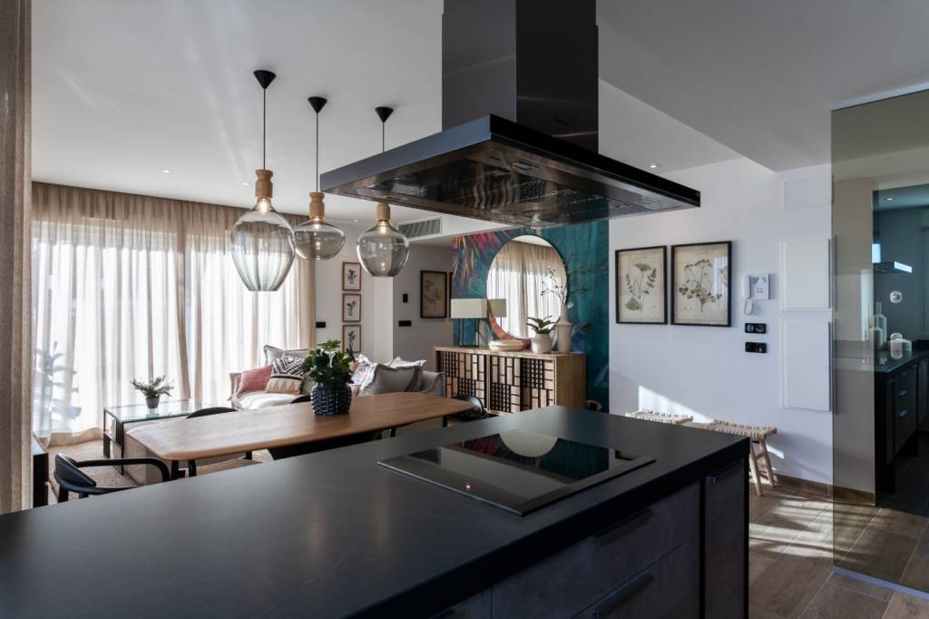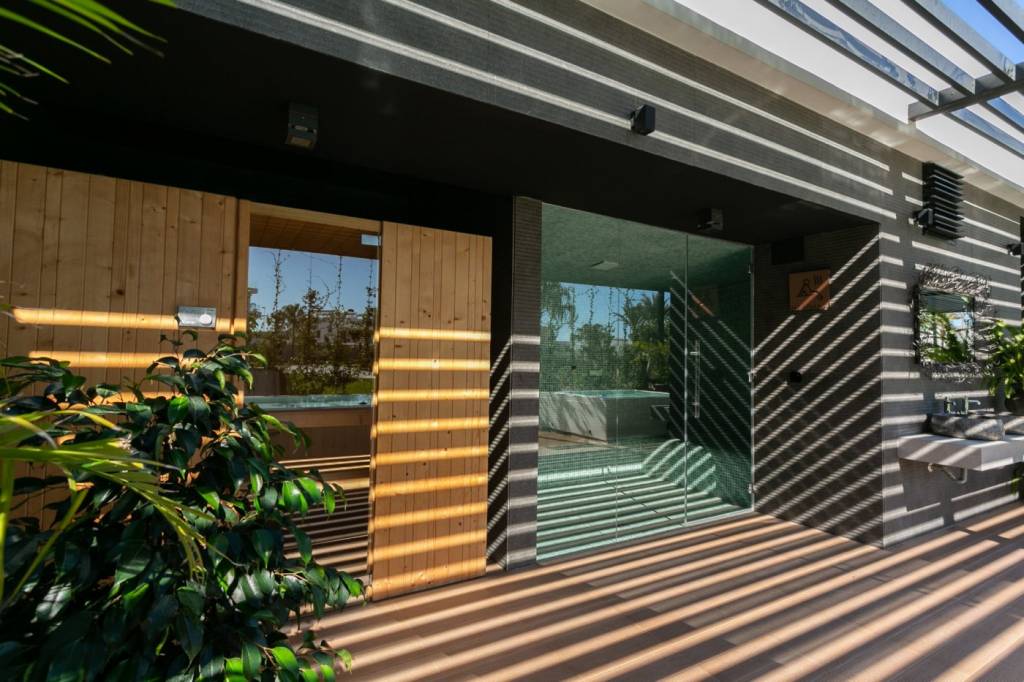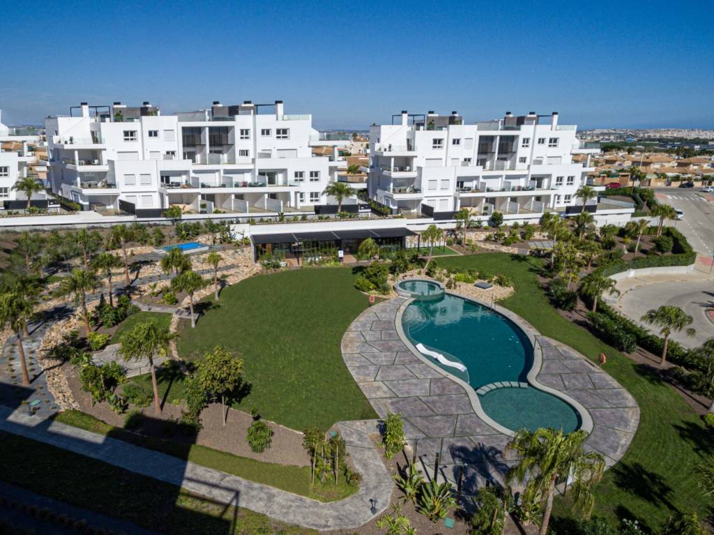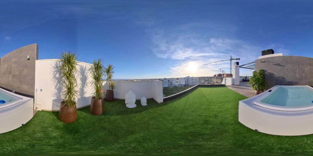 Los áticos y dúplex incluyen en sus terrazas una cocina exterior con barbacoa, pérgola, conexión TV, ducha exterior, jacuzzi privado, solárium con suelo de imitación de madera combinado con césped artificial. Además con sistema de domótica integrado en las viviendas.