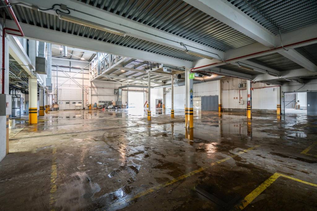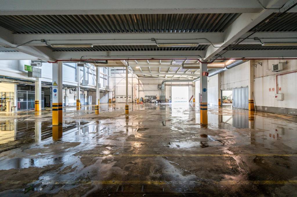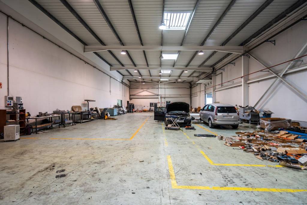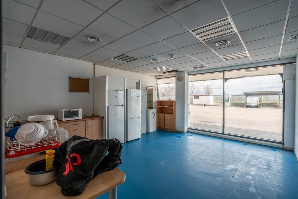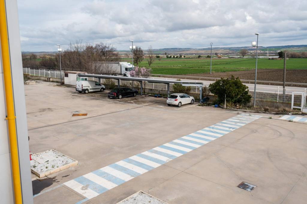 La propiedad cuenta con una superficie construida de 4.000 metros cuadrados sobre una parcela de 30.000 metros, lo que permite una operativa cómoda tanto para vehículos pesados como para turismos, con amplias zonas de aparcamiento, parte de ellas cubiertas. La nave dispone de cinco portones y dos puertos de carga que facilitan la logística diaria. Su interior está distribuido en tres grandes espacios totalmente diáfanos, con zonas que alcanzan alturas superiores a los quince metros, lo que permite un gran aprovechamiento del volumen disponible para almacenamiento o maquinaria de gran formato.