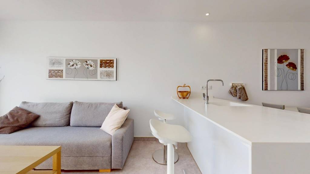 ¡Bienvenido a tu nuevo hogar! Este encantador bungalow en planta alta te ofrece la combinación perfecta de confort y vistas espectaculares. Al subir las escaleras, serás recibido por una acogedora terracita con panorámicas despejadas que invitan al relax. Una vez dentro, el luminoso salón-comedor se conecta fácilmente con la cocina, creando un espacio ideal para compartir momentos inolvidables con amigos y familiares. La ventilación cruzada asegura frescura durante todo el día gracias al acceso trasero hacia el solarium privado; ¡el lugar perfecto para disfrutar del clima soleado! En esta misma planta encontrarás dos cómodos dormitorios y dos baños bien equipados que completan este maravilloso ambiente familiar. Pero lo mejor está arriba: un solarium amplio donde podrás crear ese rincón especial soñado o simplemente relajarte bajo los rayos del sol mientras disfrutas de tus mañanas o atardeceres mágicos. No pierdas la oportunidad de vivir aquí; ¡este bungalow es justo lo que estabas buscando!