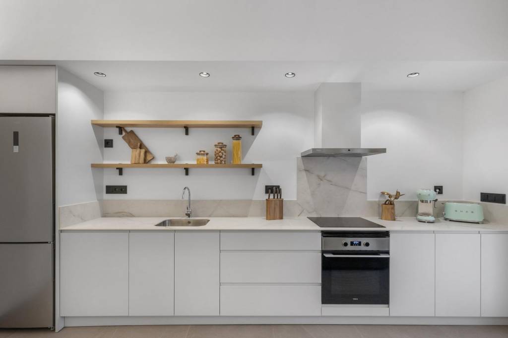 Cocina abierta con muebles y electrodomésticos incluidos
