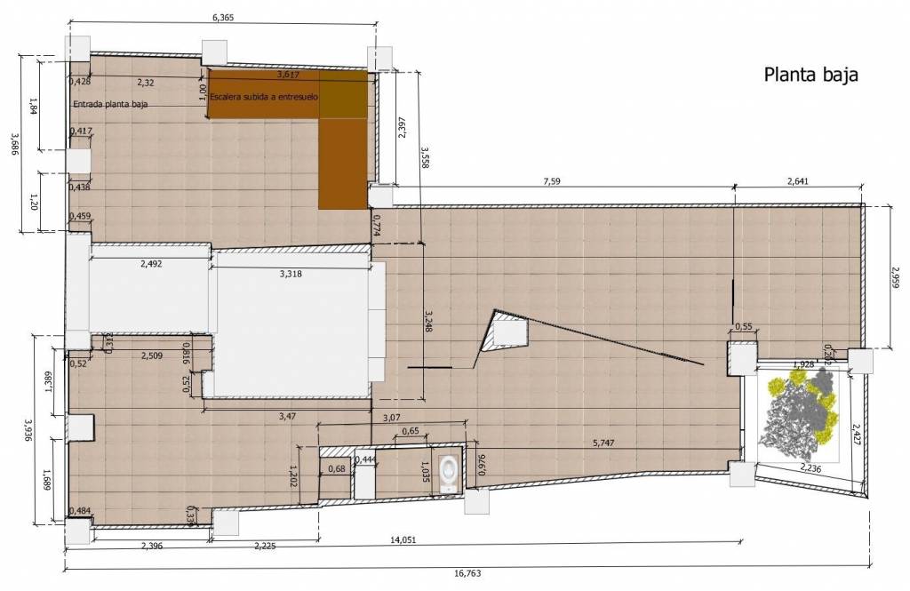 🏠 Planta baja: Espacio diáfano con acceso directo desde la calle, ideal para reconvertir en una vivienda tipo loft o mantener como despacho profesional.