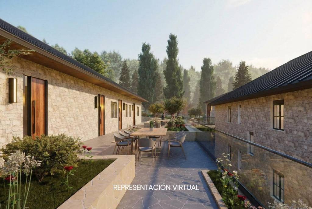 Situado a tan solo 40 minutos de Madrid, el hotel se ubica en pleno centro del municipio, en una zona tranquila rodeada de naturaleza, perfecta para el turismo rural, escapadas de fin de semana y eventos exclusivos. El entorno combina calma, paisaje y tradición, con buenas comunicaciones y todos los servicios necesarios a corta distancia, lo que lo convierte en un destino muy demandado para quienes buscan desconectar sin alejarse demasiado de la capital.