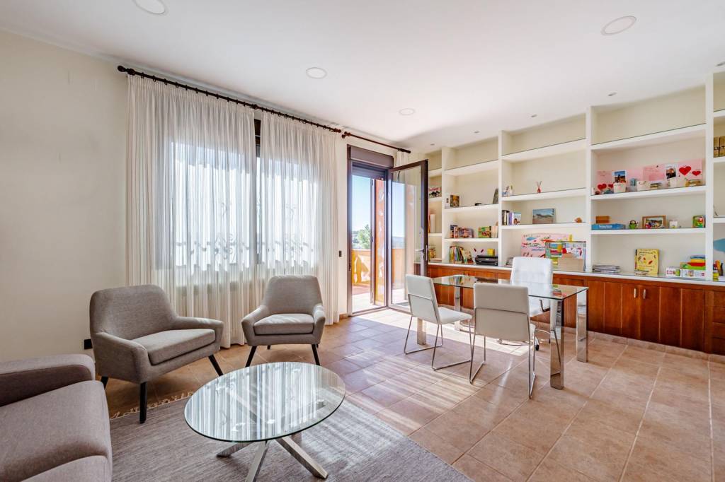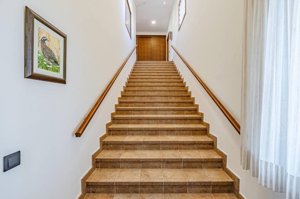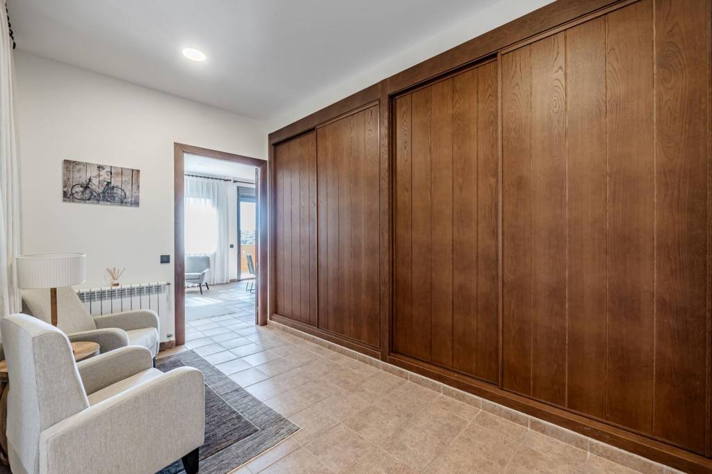 Desde el salón comedor, una ancha escalera nos lleva a la segunda planta donde tenemos la zona del dormitorio principal. Al coronar, un hall de gran amplitud nos lleva por la derecha a la zona de descanso con baño en suite y terraza con unas maravillosas vistas a la finca y por la izquierda a una zona de despacho con una segunda terraza también con vistas.