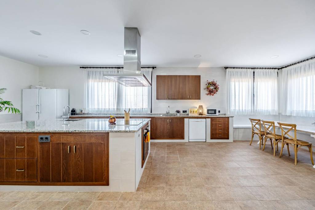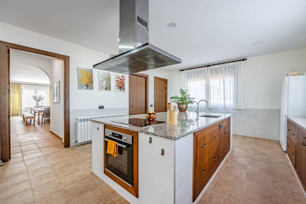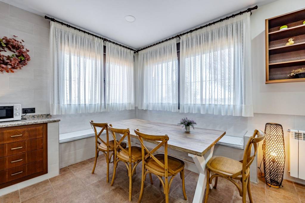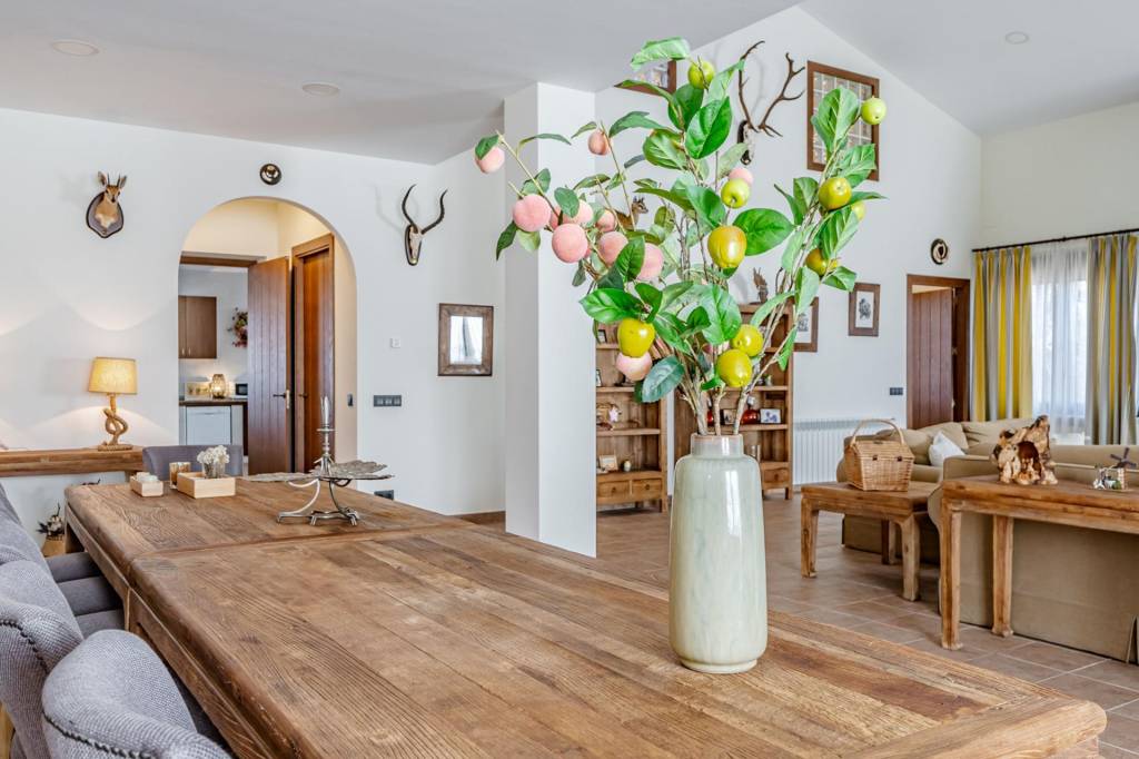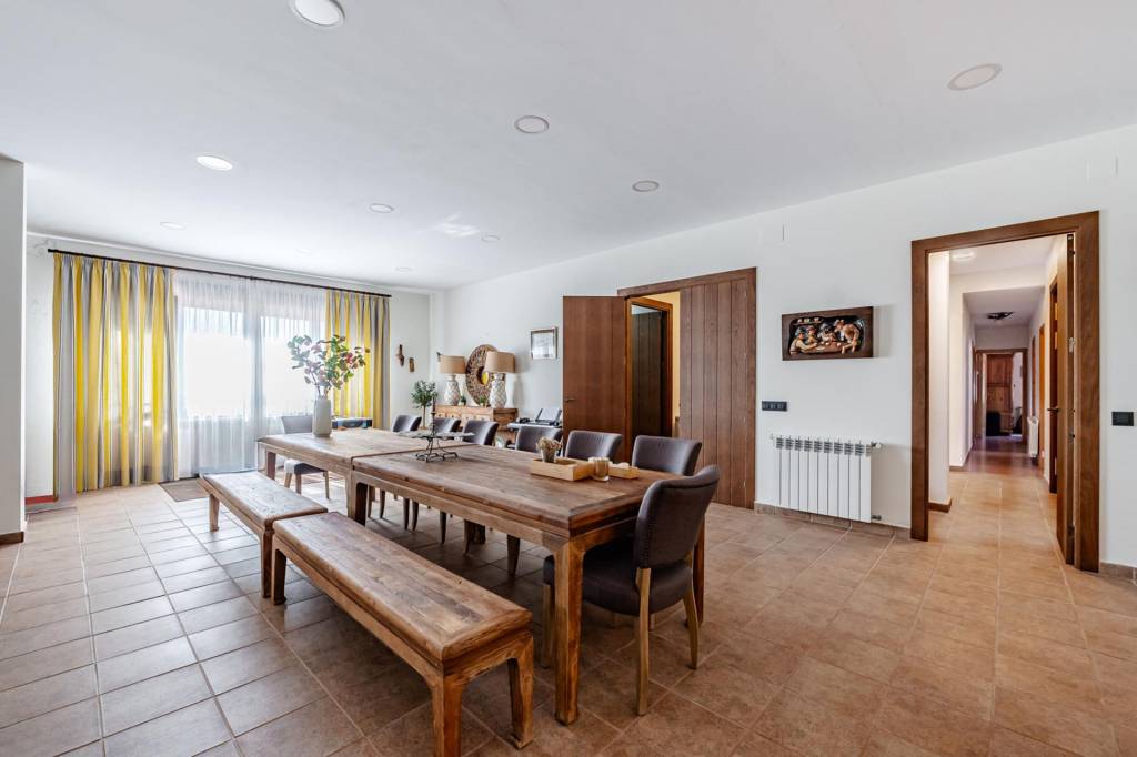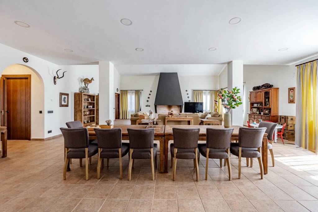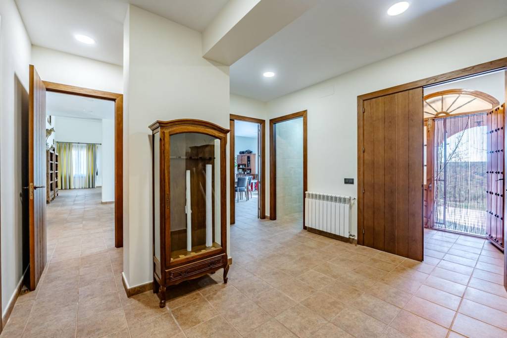 La casa principal que cuenta con 462 m² construidos distribuidos en dos plantas, ha sido reformada recientemente y esta lista y preparada para disfrutar desde el primer día. Para entrar a la vivienda pasamos por un gran porche con barbacoa, una vez dentro desde un amplio hall accedemos por la derecha a un gran salón comedor con una impresionante chimenea de grandes dimensiones, de frente pasamos a la cocina que cuenta con isla, zona de office, lavandería y despensa. Por la izquierda un pasillo nos adentra a la zona de noche con tres dormitorios de gran amplitud que cuentan con dos baños completos para dar uso a estos. Además de estos dos baños, en el hall de entrada hay un aseo de cortesía.