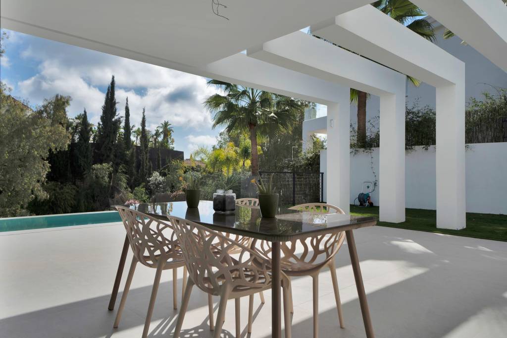 Las zonas de estar se abren hacia generosas terrazas exteriores y una piscina privada, creando un espacio perfecto para disfrutar del clima privilegiado de la Costa del Sol durante todo el año. Gracias a su orientación suroeste, la propiedad disfruta de abundante luz natural y espectaculares puestas de sol, con vistas panorámicas de la urbanización y el entorno natural.