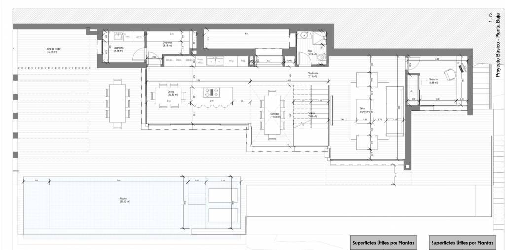 La villa cuenta con 4 amplios dormitorios y 4 baños, de los cuales 3 son en suite, proporcionando un entorno ideal tanto para la vida familiar como para recibir invitados con total comodidad y privacidad.