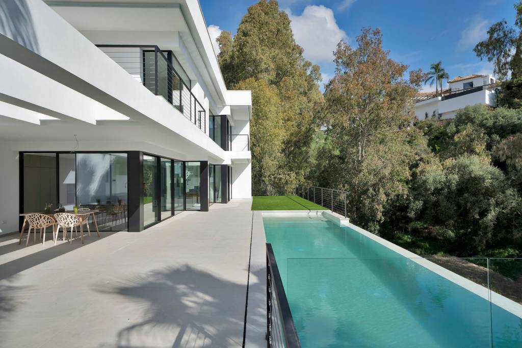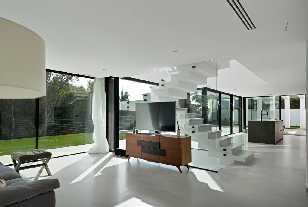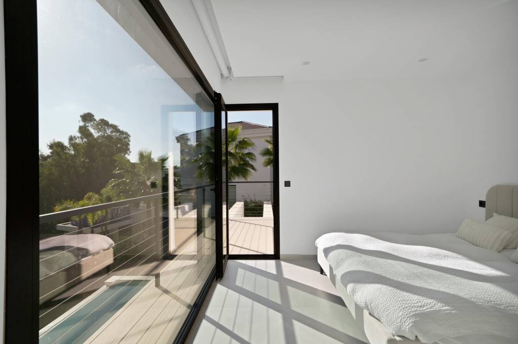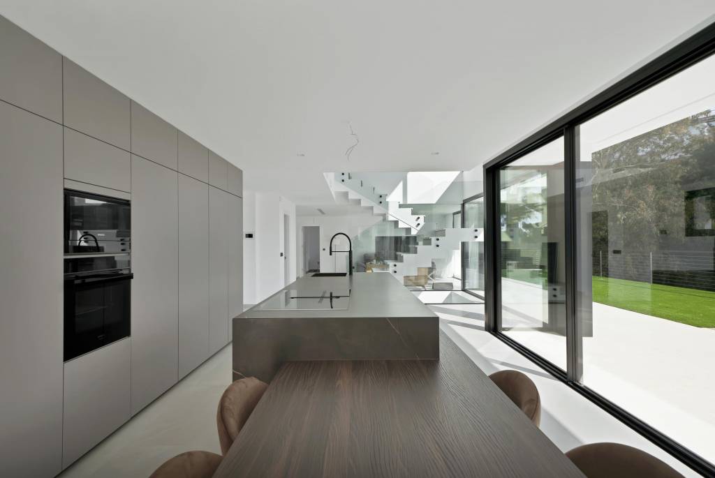 La propiedad se asienta sobre una parcela de 1.118 m² y ofrece 625 m² construidos, diseñados con una arquitectura minimalista elegante en tonos blancos y amplias superficies acristaladas que permiten una perfecta integración entre los espacios interiores y exteriores. La vivienda ha sido concebida para maximizar la luz natural, las vistas abiertas y la sensación de amplitud.