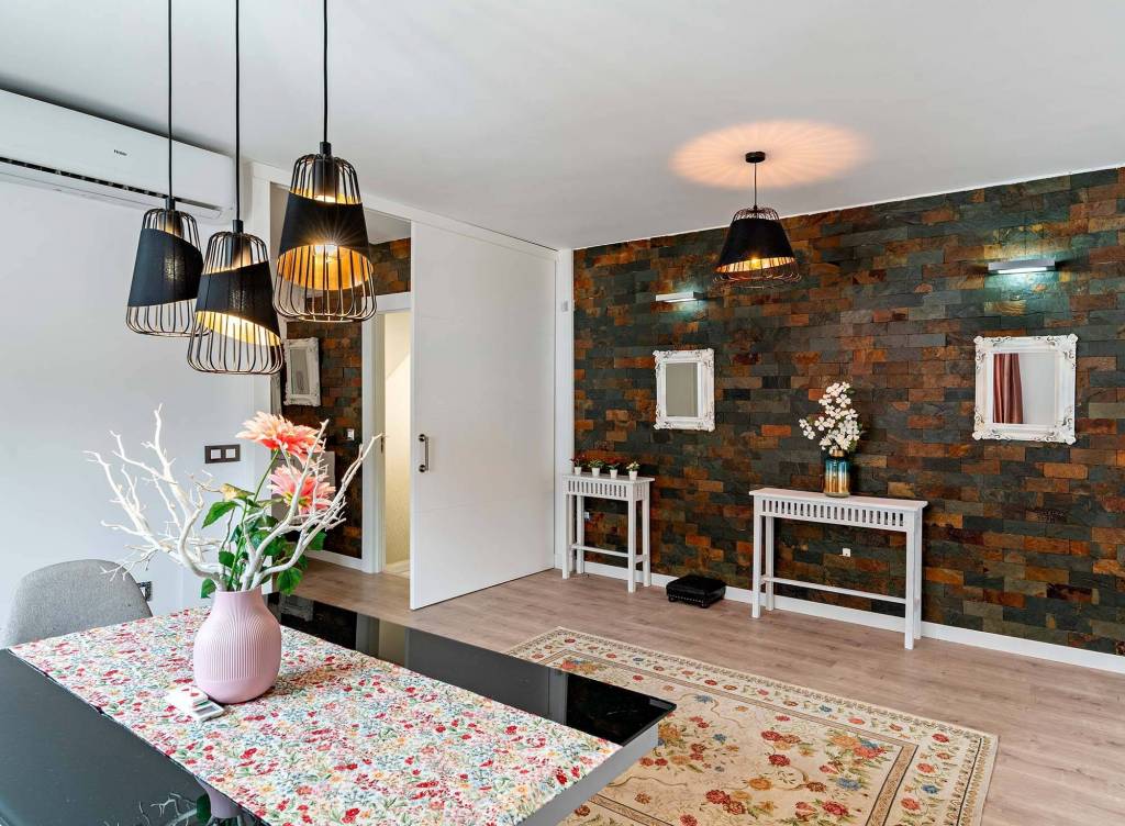 La planta baja dispone de un agradable porche donde disfrutar del exterior, cocina equipada y amueblada, cuarto de baño y un gran salón-comedor con dos ambientes claramente diferenciados, aportando comodidad y funcionalidad.