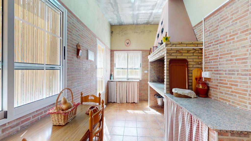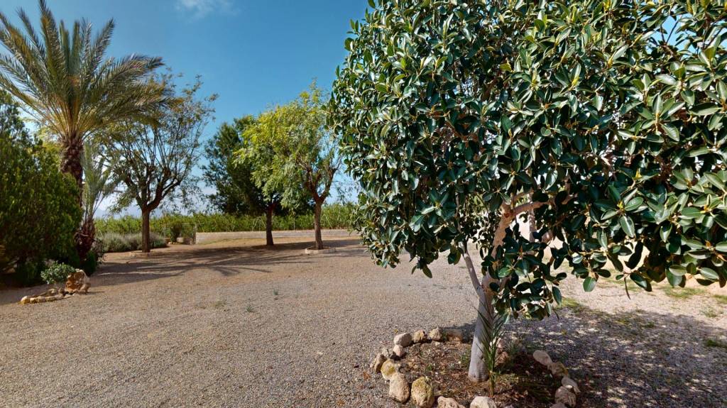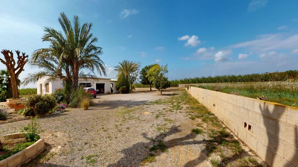 La parcela, con un cuidado excepcional, incluye árboles frutales en producción (naranjos, limoneros y cerezos), combinando rentabilidad agrícola con calidad de vida.
