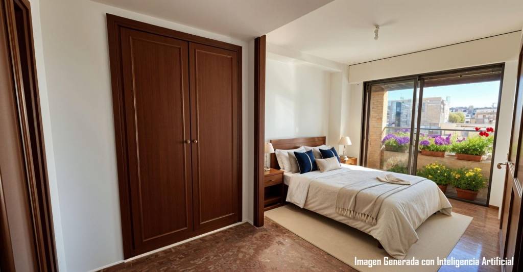 Las imágenes muestran una propuesta de decoración orientativa generada por IA. La vivienda se vende sin muebles.