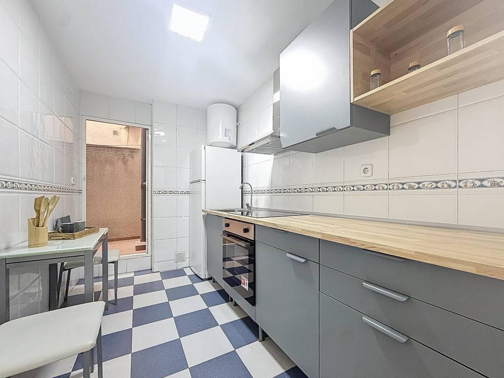 Nada más entrar se percibe una vivienda bien conservada, cuidada y funcional. El salón-comedor ofrece un espacio generoso para crear zona de estar y comedor, con buena entrada de luz natural. La cocina es independiente, está equipada con electrodomésticos y tiene salida a un patio de aproximadamente 6 m², un desahogo muy útil como zona de ventilación, almacenaje o apoyo diario.