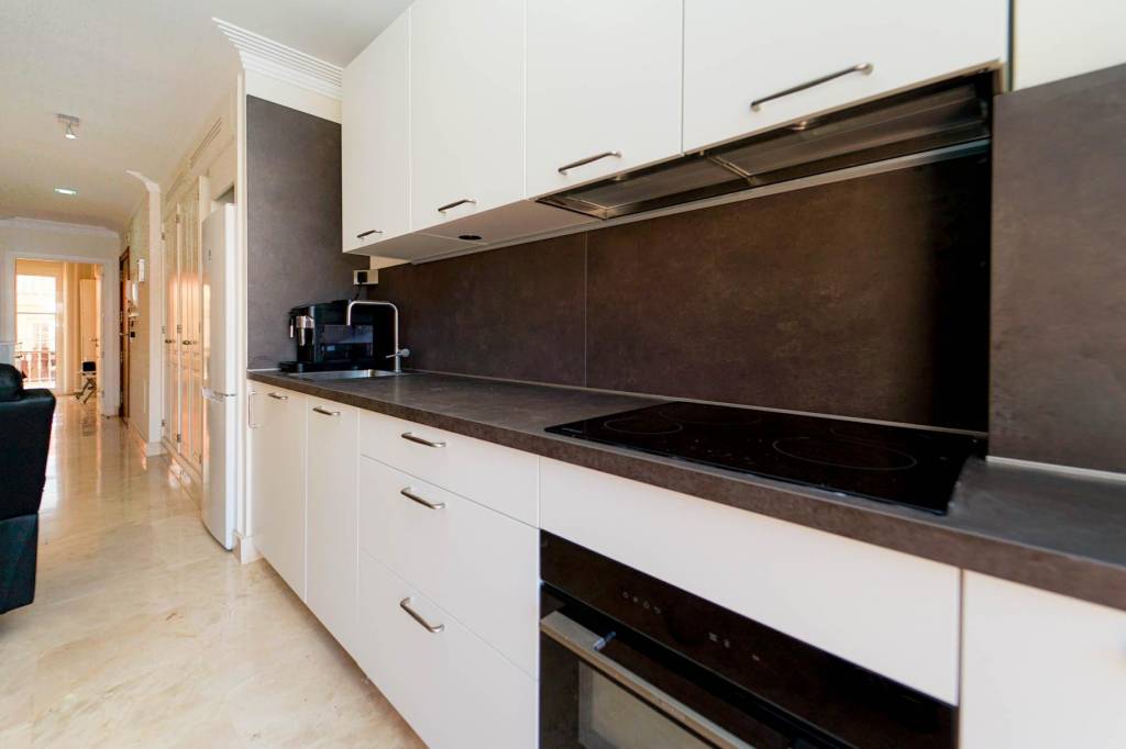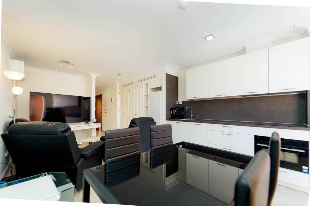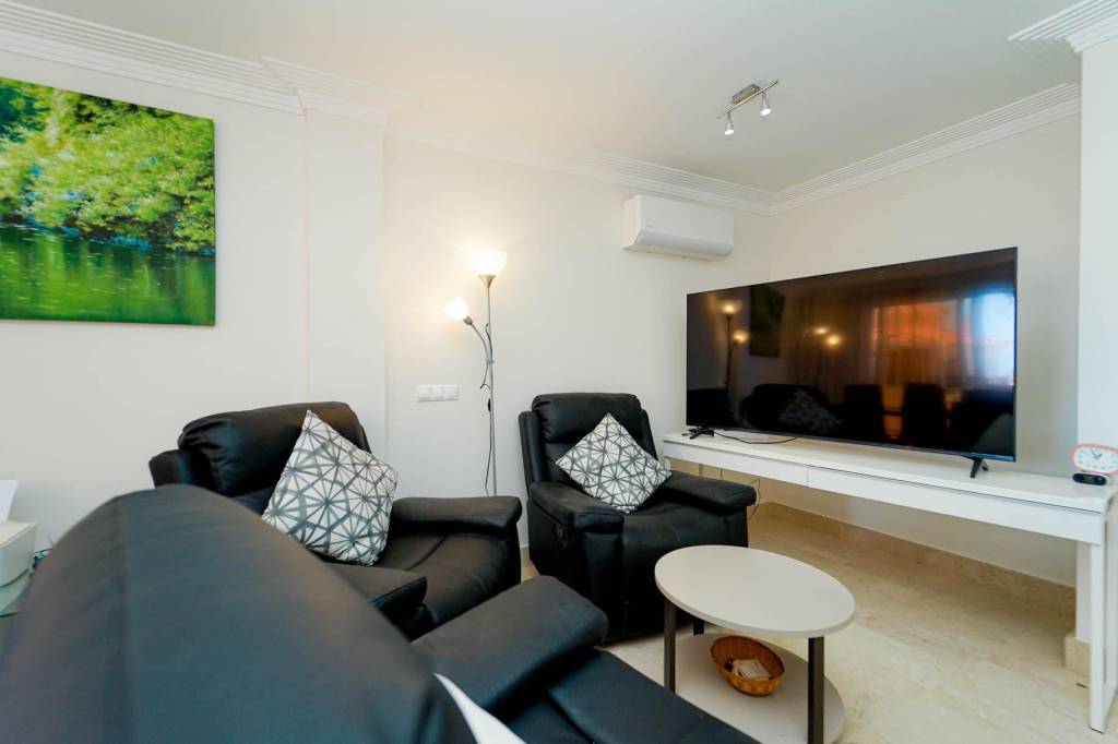 El apartamento destaca por su diseño moderno y luminoso, con un salón de concepto abierto que se integra de manera natural con la cocina, creando un espacio acogedor. La terraza se percibe como una prolongación del interior y dispone de toldo superior y frontal, que aportan sombra y mayor intimidad, siendo perfecta para momentos de relax o reuniones sociales.
