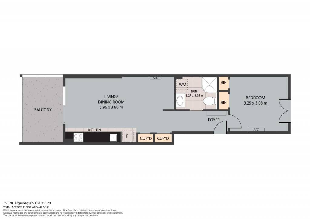 El plano publicado debe ser considerado como croquis orientativo, no como reflejo exacto de la realidad física del inmueble, pudiendo existir inexactitud en el trazado del plano y en las medidas.