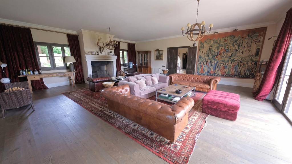 La vivienda principal, de estilo mediterráneo y arquitectura armoniosa, destaca por sus cubiertas de teja árabe y por una distribución que fusiona perfectamente tradición y sofisticación. Con aproximadamente 2.000 m² construidos y organizada en dos plantas, la casa ha sido completamente reformada y ofrece una composición excepcional. En la primera planta se encuentran 7 amplios dormitorios, todos ellos con baño en suite. En la planta baja dispone de 8 dormitorios y 8 baños, además de 2 grandes salones, 2 habitaciones de servicio con 2 baños y una zona independiente de servicio con salón y comedor de tamaño medio. La propiedad se completa con una piscina, zona de barbacoa ideal para reuniones al aire libre y una casa de guardeses que cuenta con 4 dormitorios, 3 baños, dos de ellos en suite, 2 salones medianos, comedor y cocina. La cocina y el mobiliario no están incluidos en el precio, aunque son negociables.